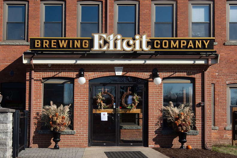 Open mic and socializing at Elicit Brewing in Manchester.